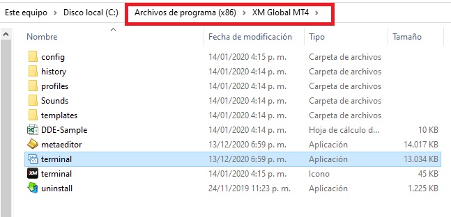 Primero: Ir a la carpeta de instalación del Metratrader.