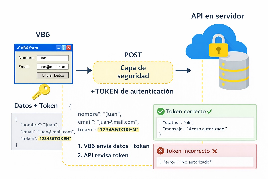 Un token es una clave secreta que el cliente (VB6) debe enviar junto con la petición.