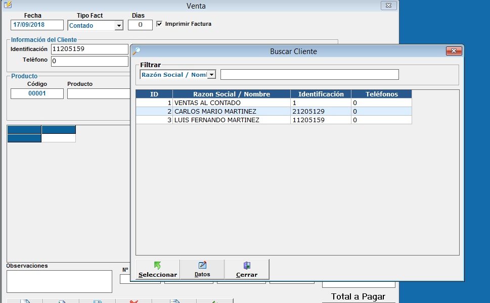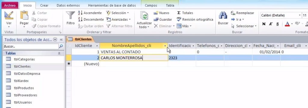 En la base de datos debemos tener un cliente predeterminado que es para las ventas de contado, este cliente no se puede modificar siempre debe aparecer en este caso va a tener el id = 1