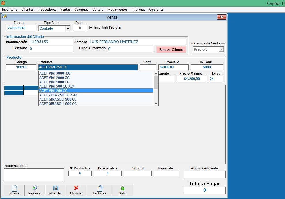 Si se escoge uno de los 3 en la ventana de ventas se deshabilitará el ComboBox y se dejara predeterminado el precio ya seleccionado para el cliente.