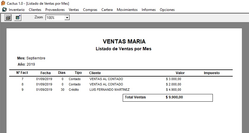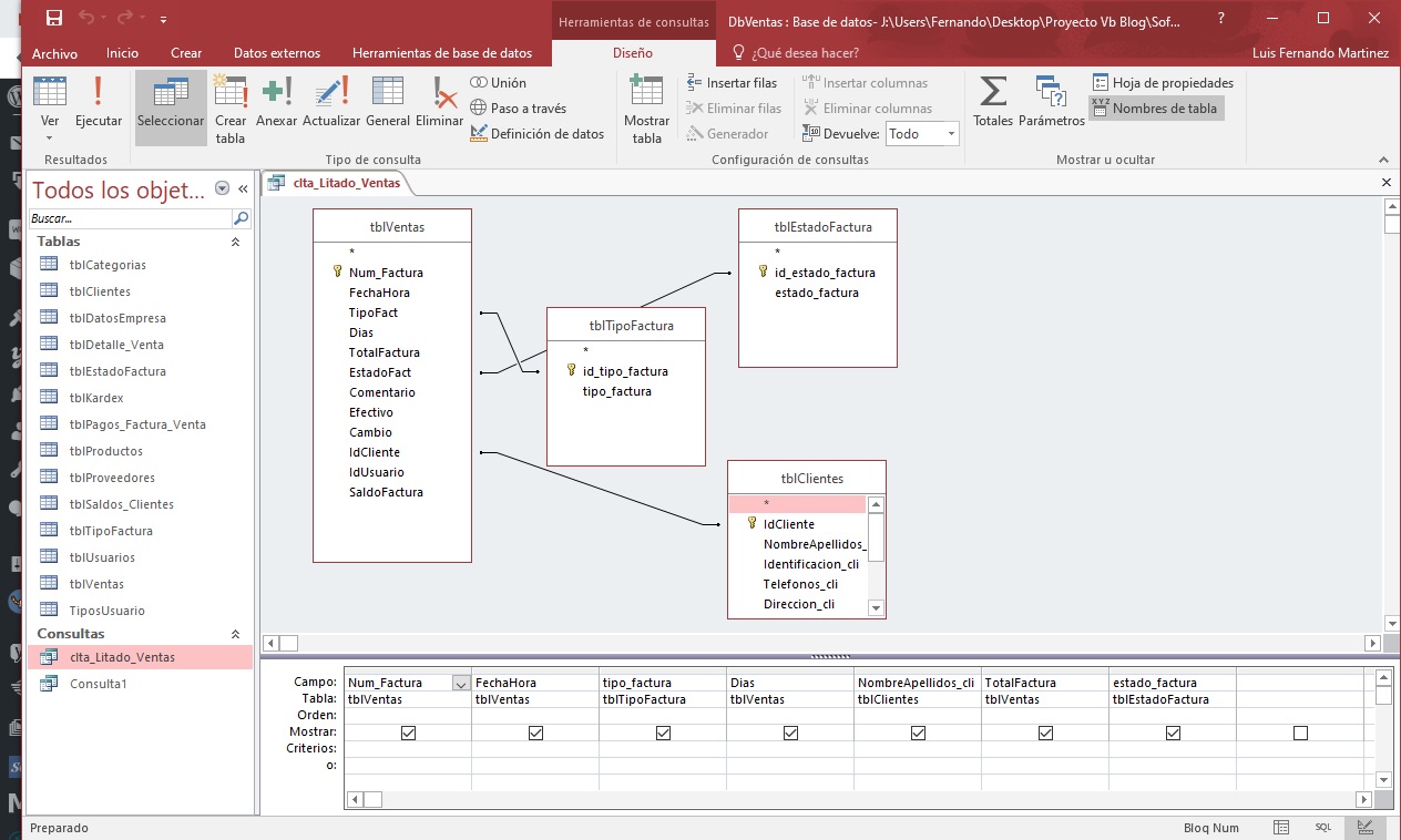 Luego de tener la consulta lista diseñamos el reporte de listado de ventas quedando de la siguiente manera: