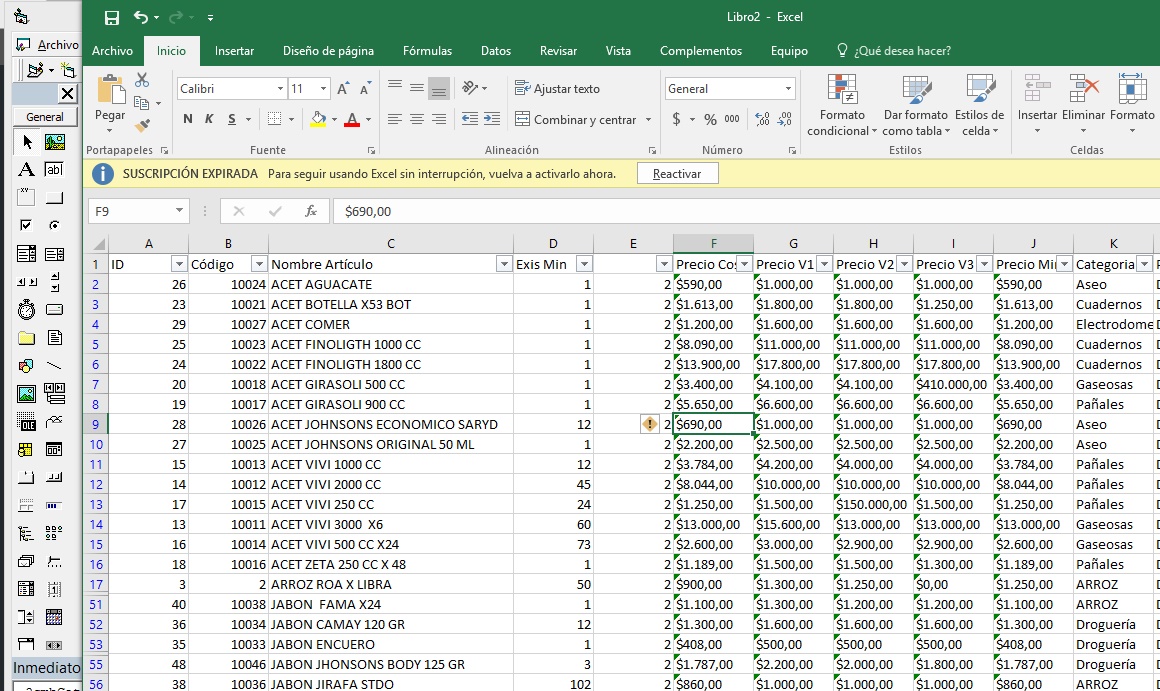 End Sub El exportar funciona de la siguiente manera: El exportar toma los productos listados en el msGrid recorriendo fila a fila y escribiendo en cada celda del archivo de MS Excel por eso es importar tener claro que si queremos exportar todo los productos debemos listarlos todos: