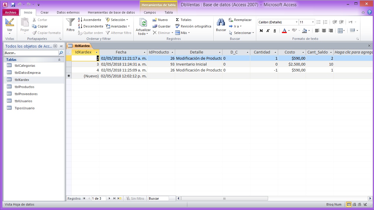 En esta lección veremos como se crea un consulta de inserción de datos desde MS Access para probar la consulta que usaremos en Visual Basic para registrar los movimientos del Producto en el Kardex.