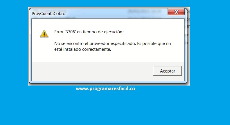 Error 3706 No se encontró especificado – Microsoft Office, En algunas ocasiones en nuestras aplicaciones de Visual Basic nos encontramos con el error.