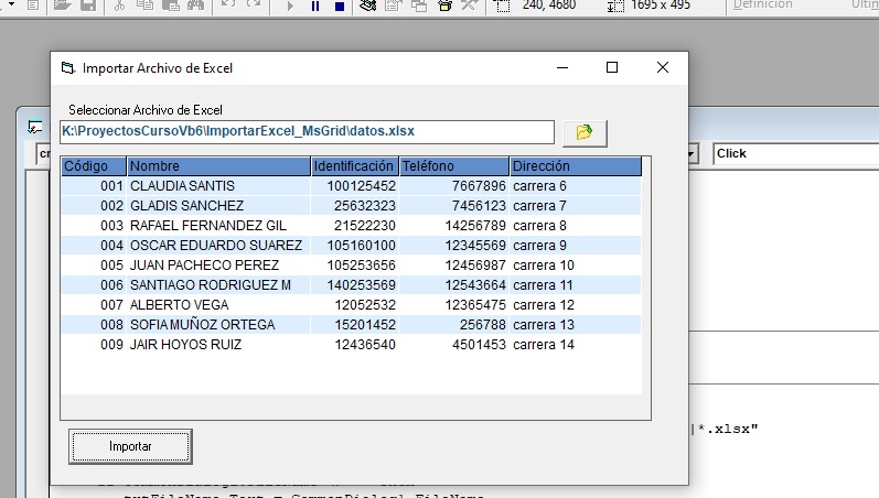Importar datos de un archivo de Excel a un Control MshFlexGrid