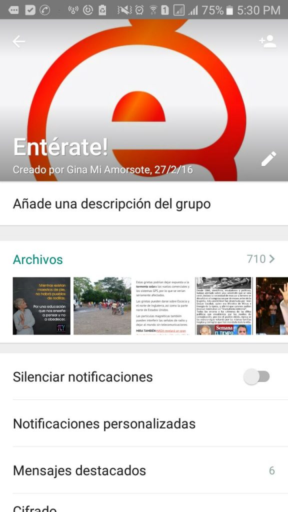 La descripción la puede añadir cualquiera de los miembros, aunque no sean administradores. Para incluirla, haz clic en el nombre del grupo en la parte superior del chat, y verás que ahora aparece la opción Añade una descripción del grupo justo debajo del nombre de la pantalla de información. A continuación, escribe el texto que quieras y pulsa en Guardarcuando termines. Lo que no está indicado es el límite de caracteres, así que de momento no sabemos cuánto texto se puede escribir.