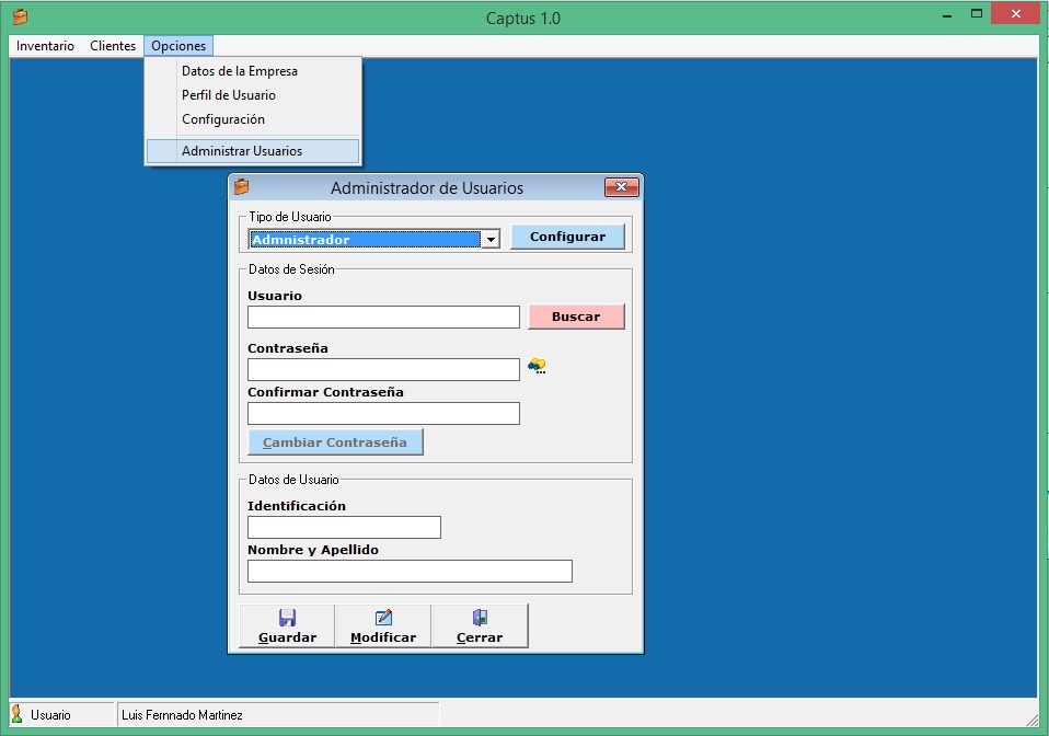 En esta parte del vídeo se creo la ventana para la administración de usuarios, el fin de esta ventana es crear usuarios para el ingreso al software. Existen varios tipos de roles de usuarios para eso al crear el usuario se selecciona el tipo, que pueden ser: Administrador, secretaria o vendedor. Estos son los tipos de roles que se manejaran pero también se creara una ventana para crear Tipos de Usuario así que se pueden crear los roles que se necesiten sin ningún limite.