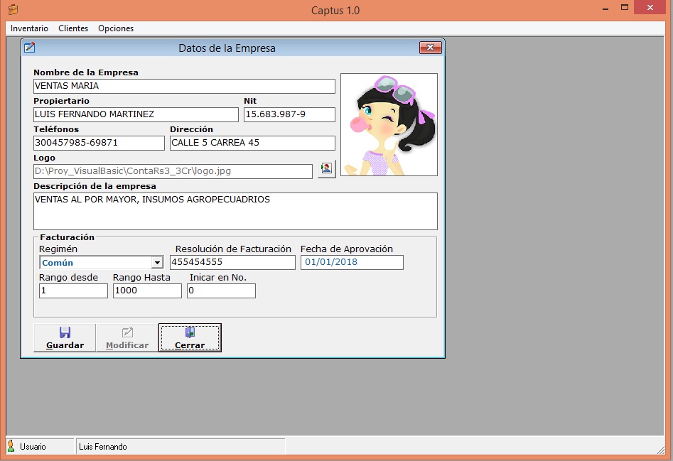 Este logo se utilizará más adelante para la impresión de la factura de ventas y para otros informes.