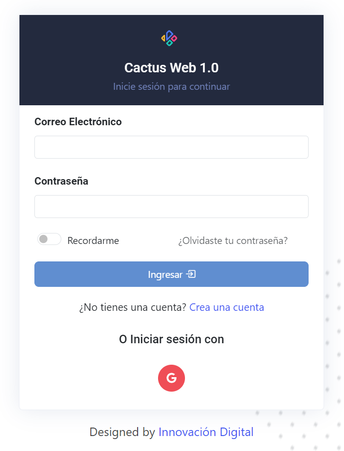 También puedes usar tu cuenta de Google para iniciar sesión usando el siguiente link. https://cactusweb.programaresfacil.co/